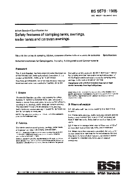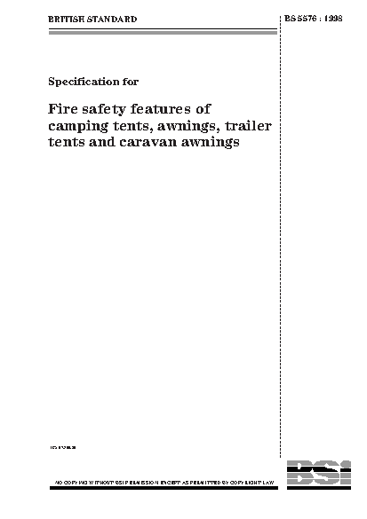 Specification for safety features of camping tents, awnings, trailer tents and caravan awnings