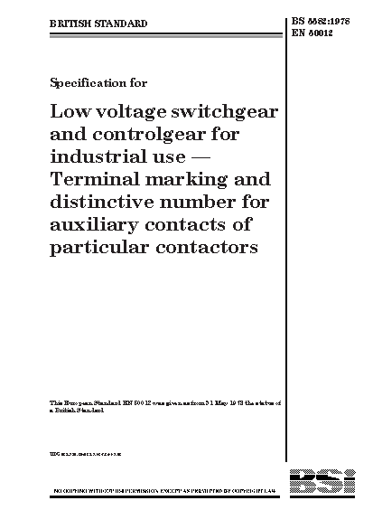 Specification for low voltage switchgear and controlgear for industrial use. Terminal marking and distinctive number for auxiliary contacts of particular contactors
