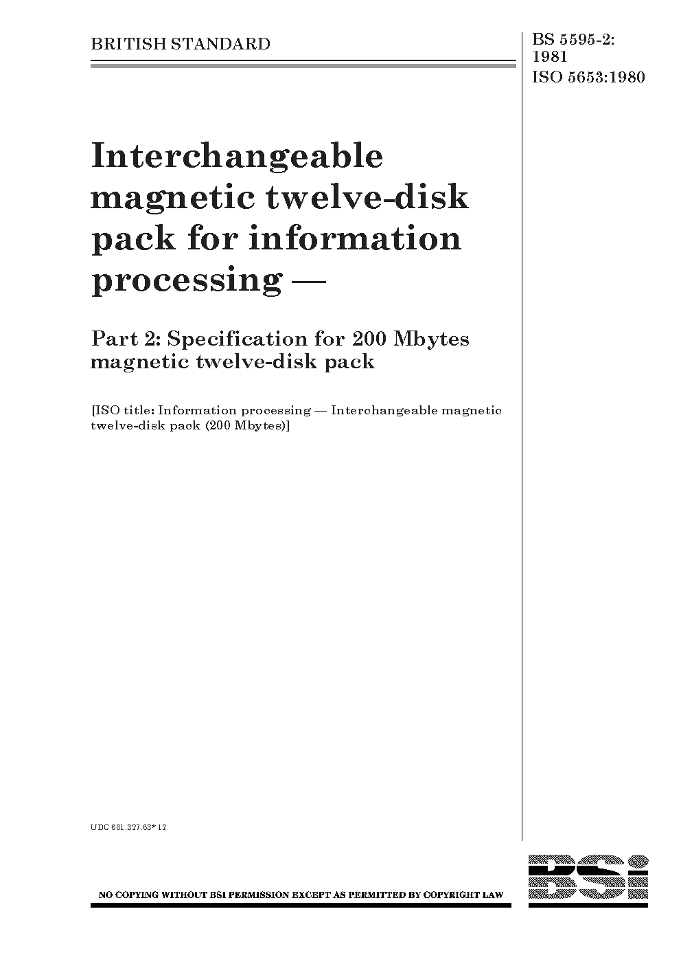 Interchangeable magnetic twelve-disk pack for information processing Specification 200 Mbytes