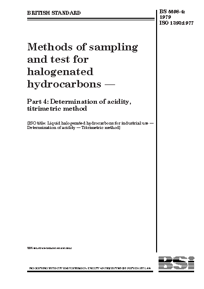Methods of sampling and test for halogenated hydrocarbons Determination acidity, titrimetric method