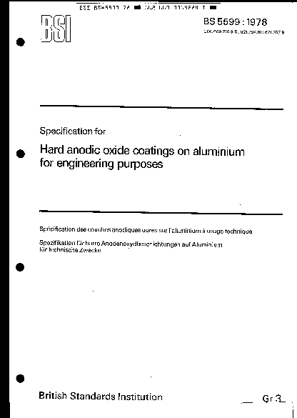 Specification for hard anodic oxide coatings on aluminium for engineering purposes