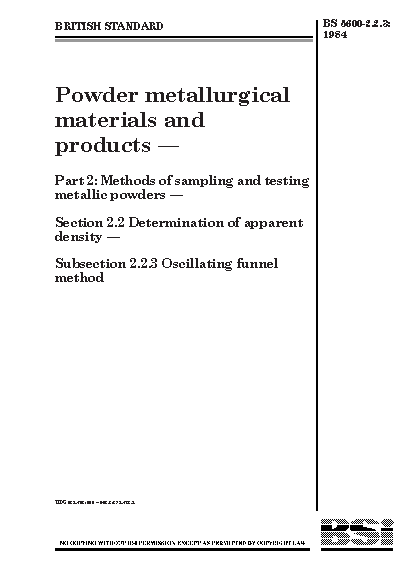 Powder metallurgical materials and products. Methods of sampling testing metallic powders. Determination apparent density Oscillating funnel method