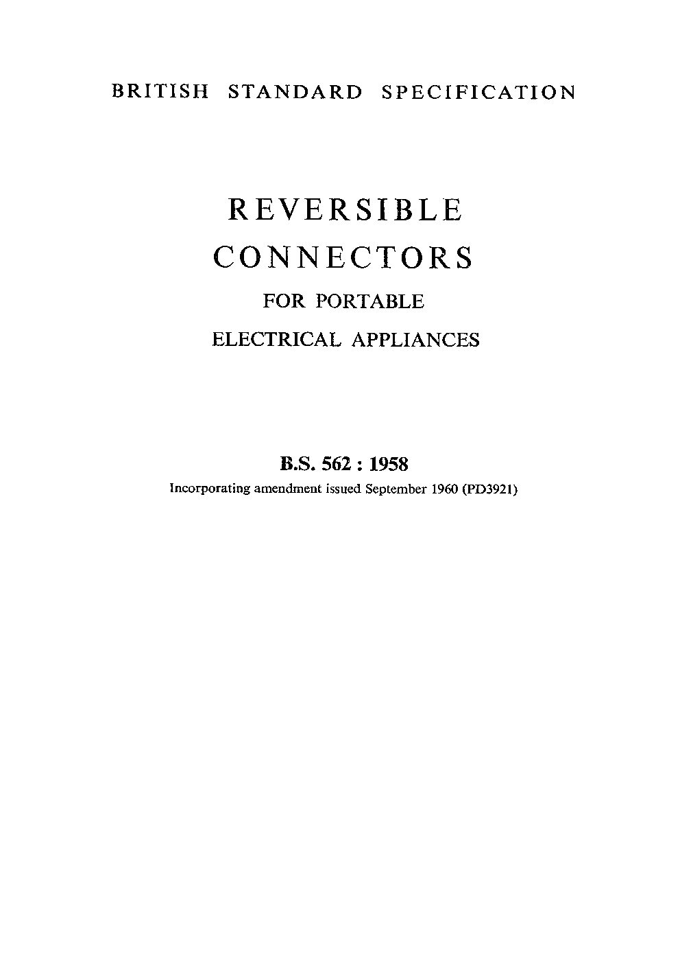 Specification. Reversible connectors for portable electrical appliances.