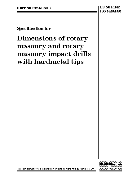 Specification for dimensions of rotary masonry and rotary masonry impact drills with hardmetal tips
