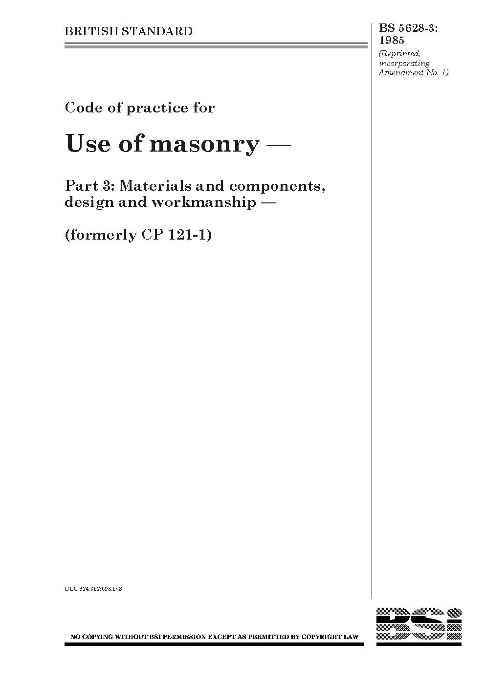 Code of practice for the use of masonry - Structural use of unreinforced masonry