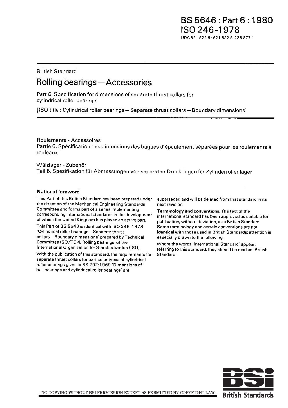 Rolling bearings. Accessories Specification for dimensions of separate thrust collars cylindrical roller bearings