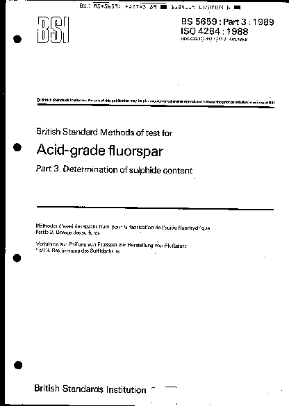 Methods of test for acid-grade fluorspar Determination sulphide content