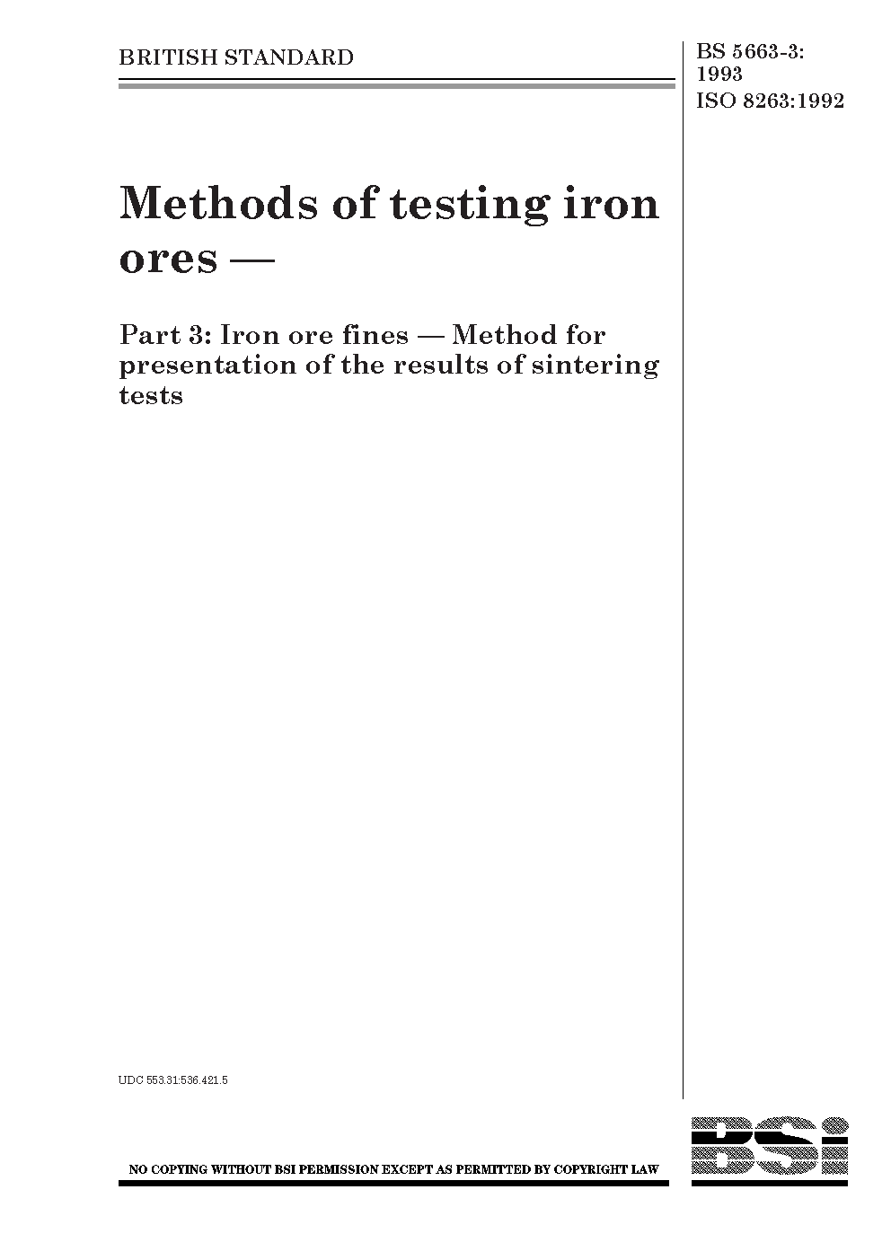 Methods of testing iron ores Iron ore fines. Method for presentation the results sintering tests
