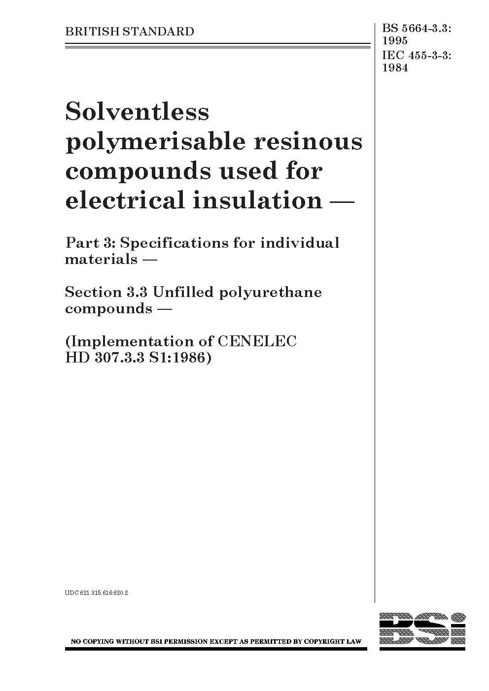 Solventless polymerisable resinous compounds used for electrical insulation. Specification individual materials Unfilled polyurethane