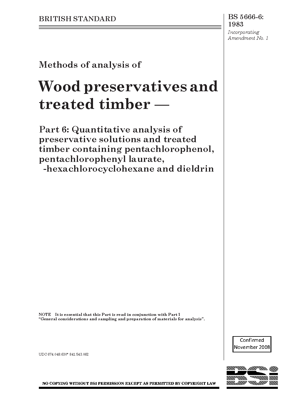 Methods of analysis wood preservatives and treated timber Quantitative preservative solutions containing pentachlorophenol, pentachlorophenyl laurate, ?-hexachlorocyclohexane dieldrin