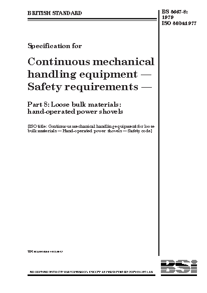 Specification for continuous mechanical handling equipment - safety requirements Loose bulk materials: hand-operated power shovels