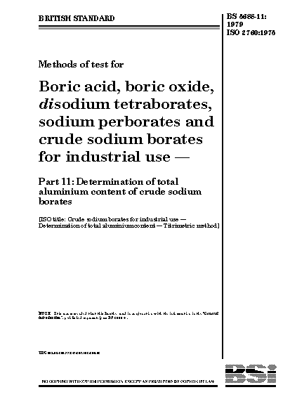 Methods of test for orthoboric acid (boric acid), diboron trioxide oxide), disodium tetraborates, sodium perborates and crude borates industrial use Determination total aluminium content
