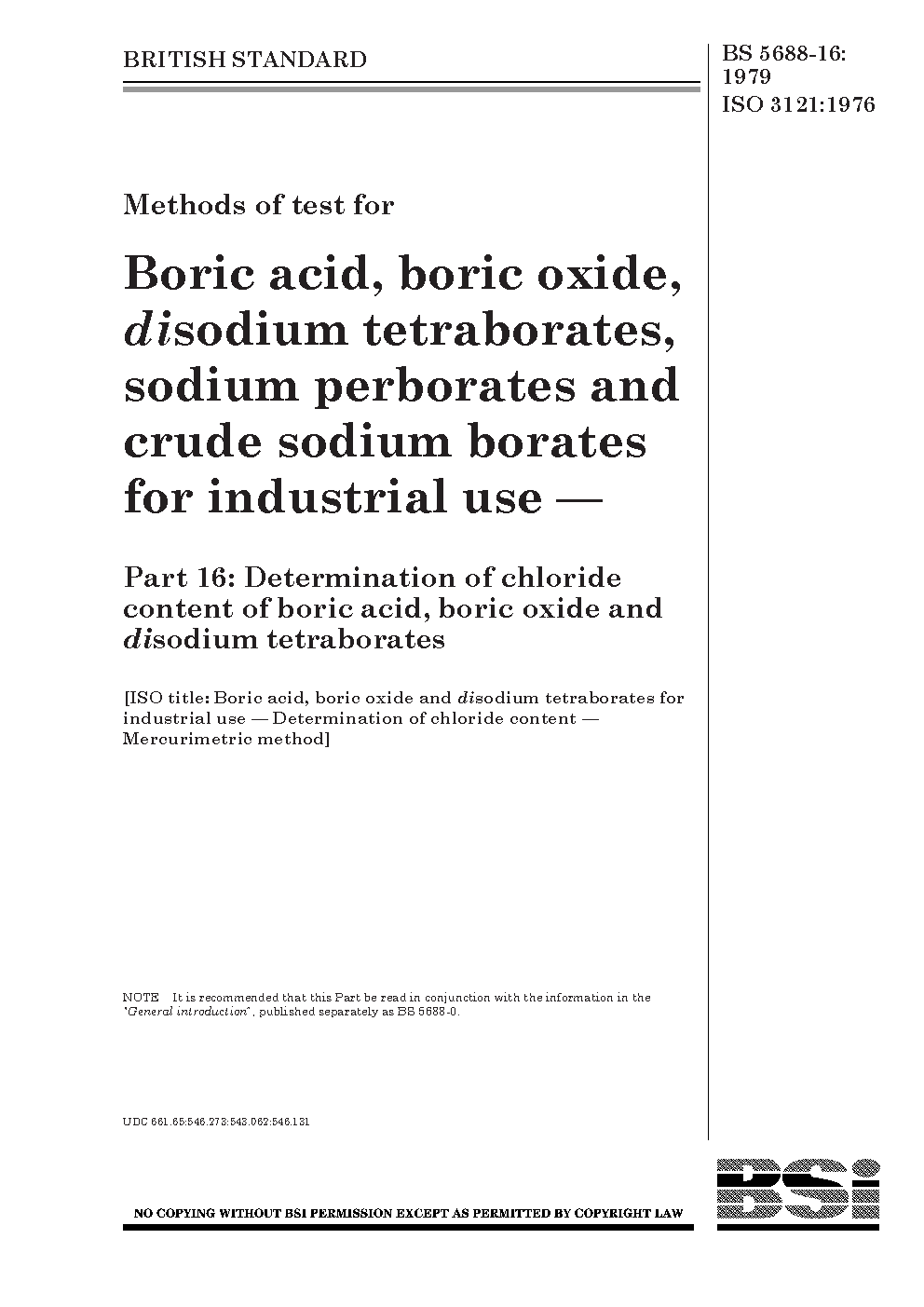 Methods of test for orthoboric acid (boric acid), diboron trioxide oxide), disodium tetraborates, sodium perborates and crude borates industrial use Determination chloride content boric acid, oxide disodium tetraborates