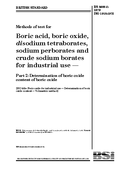 Methods of test for orthoboric acid (boric acid), diboron trioxide oxide), disodium tetraborates, sodium perborates and crude borates industrial use Determination boric oxide content