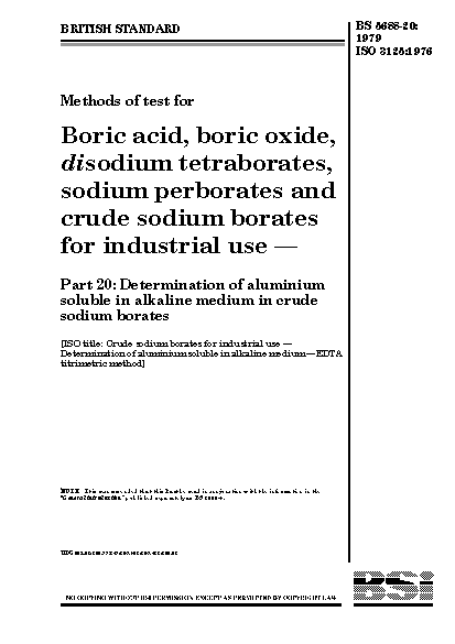Methods of test for orthoboric acid (boric acid), diboron trioxide oxide), disodium tetraborates, sodium perborates and crude borates industrial use Determination aluminium soluble in alkaline medium