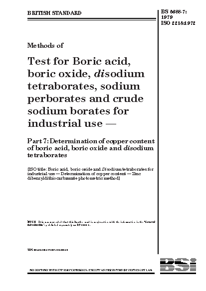 Methods of test for orthoboric acid (boric acid), diboron trioxide oxide), disodium tetraborates, sodium perborates and crude borates industrial use Determination copper content boric acid, oxide disodium tetraborates