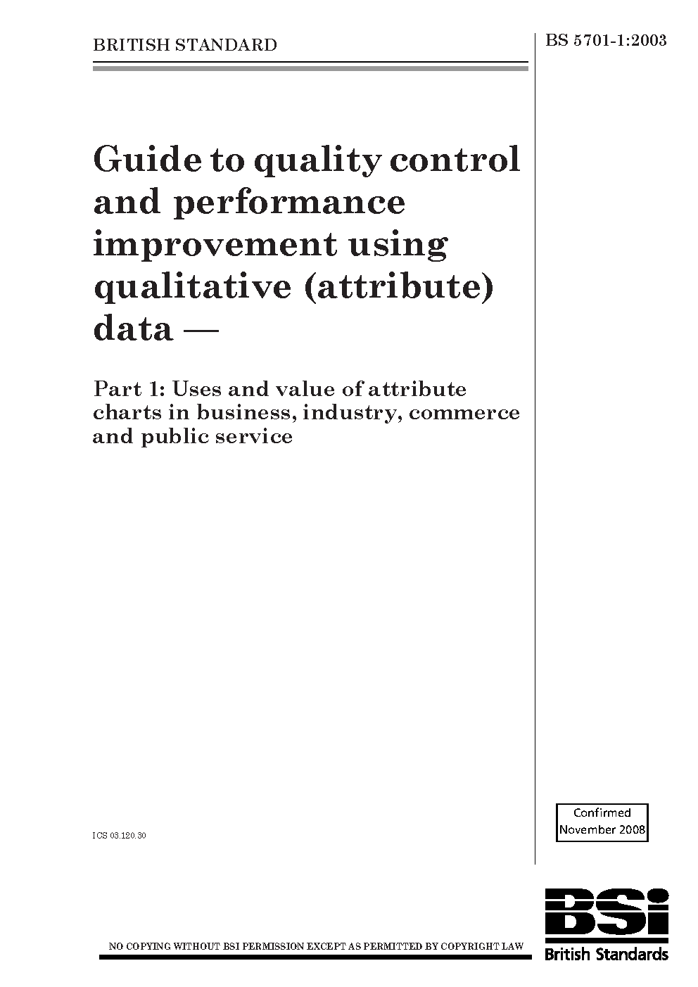 Guide to quality control and performance improvement using qualitative (attribute) data Uses value of attribute charts in business, industry, commerce public service