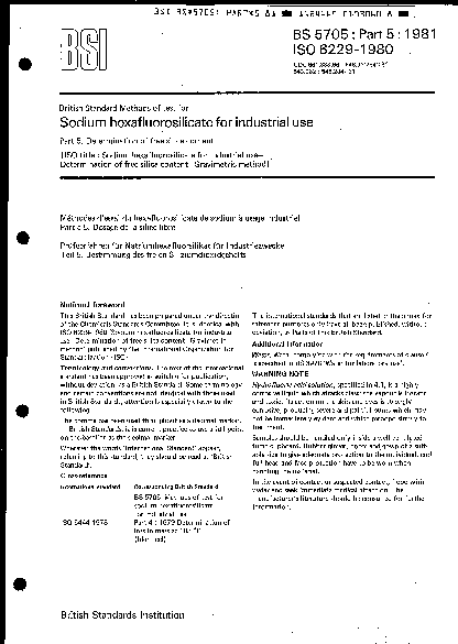 Methods of test for sodium hexafluorosilicate industrial use Determination free silica content