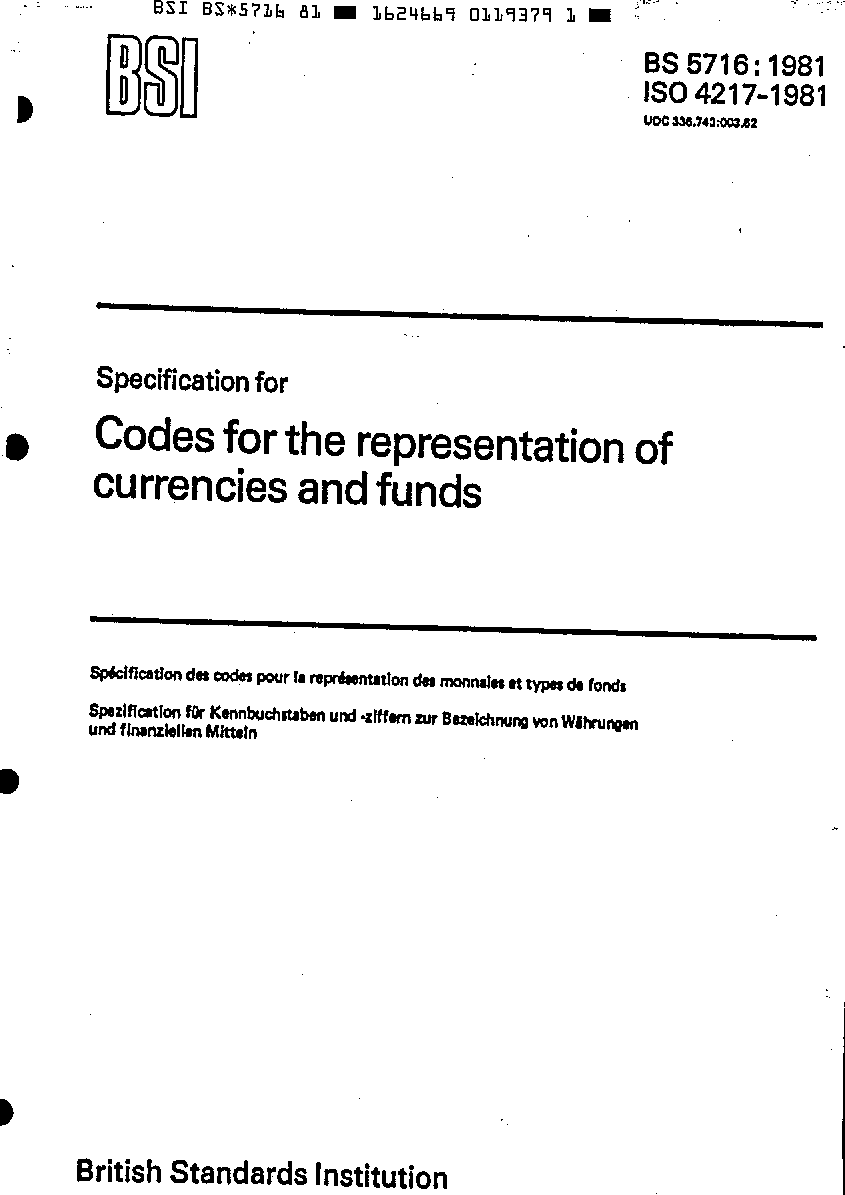 Specification for codes for the representation of currencies and funds