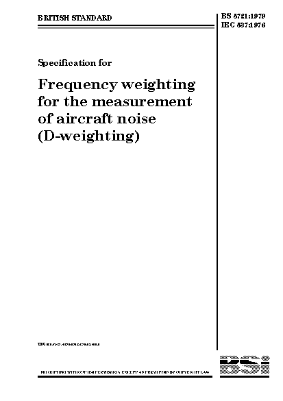 Specification for frequency weighting for the measurement of aircraft noise (D-weighting)