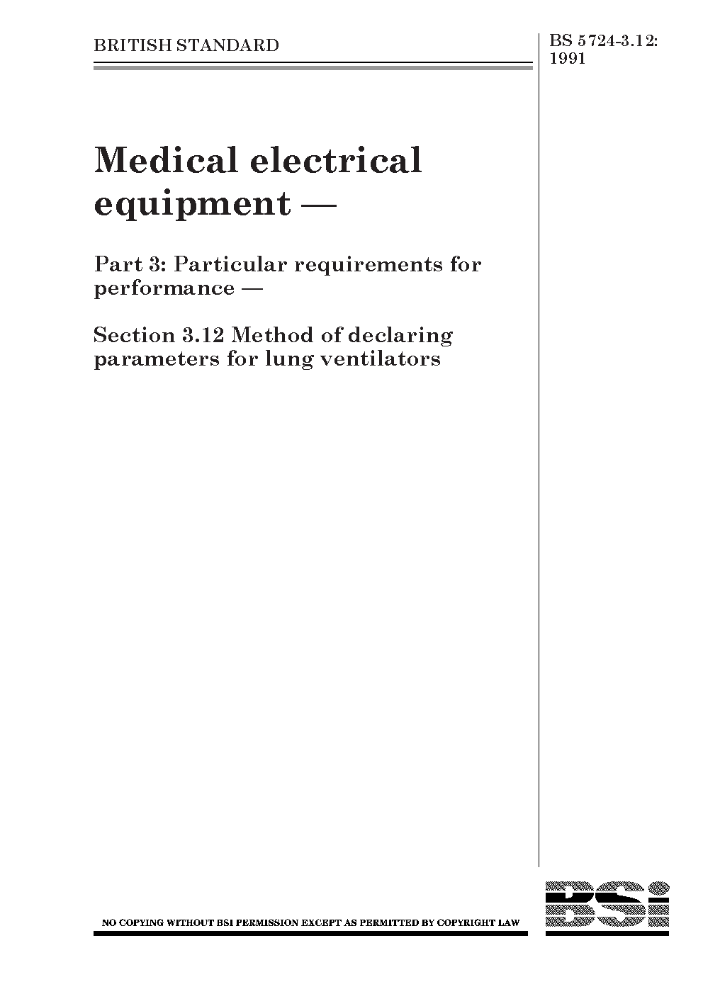 Medical electrical equipment. Particular requirements for performance Method of declaring parameters lung ventilators