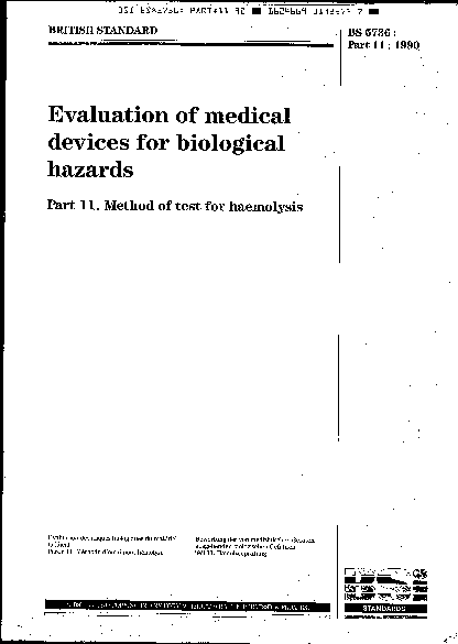 Evaluation of medical devices for biological hazards Method test haemolysis