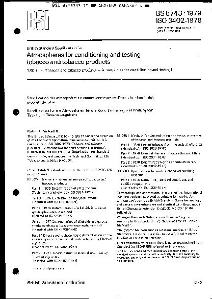 Specification for atmospheres for conditioning and testing tobacco and tobacco products