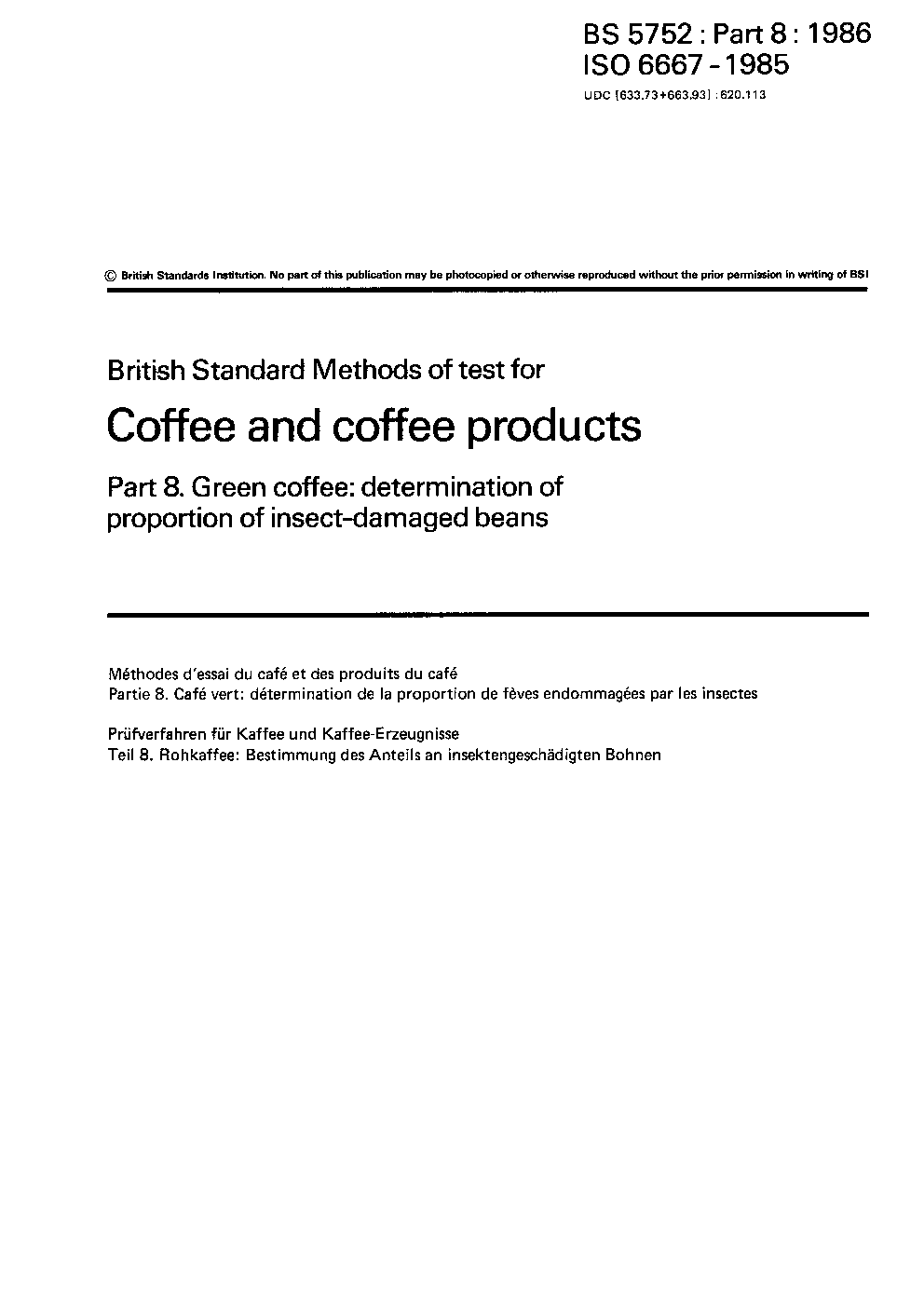 Methods of test for coffee and products Green coffee: determination proportion insect-damaged beans