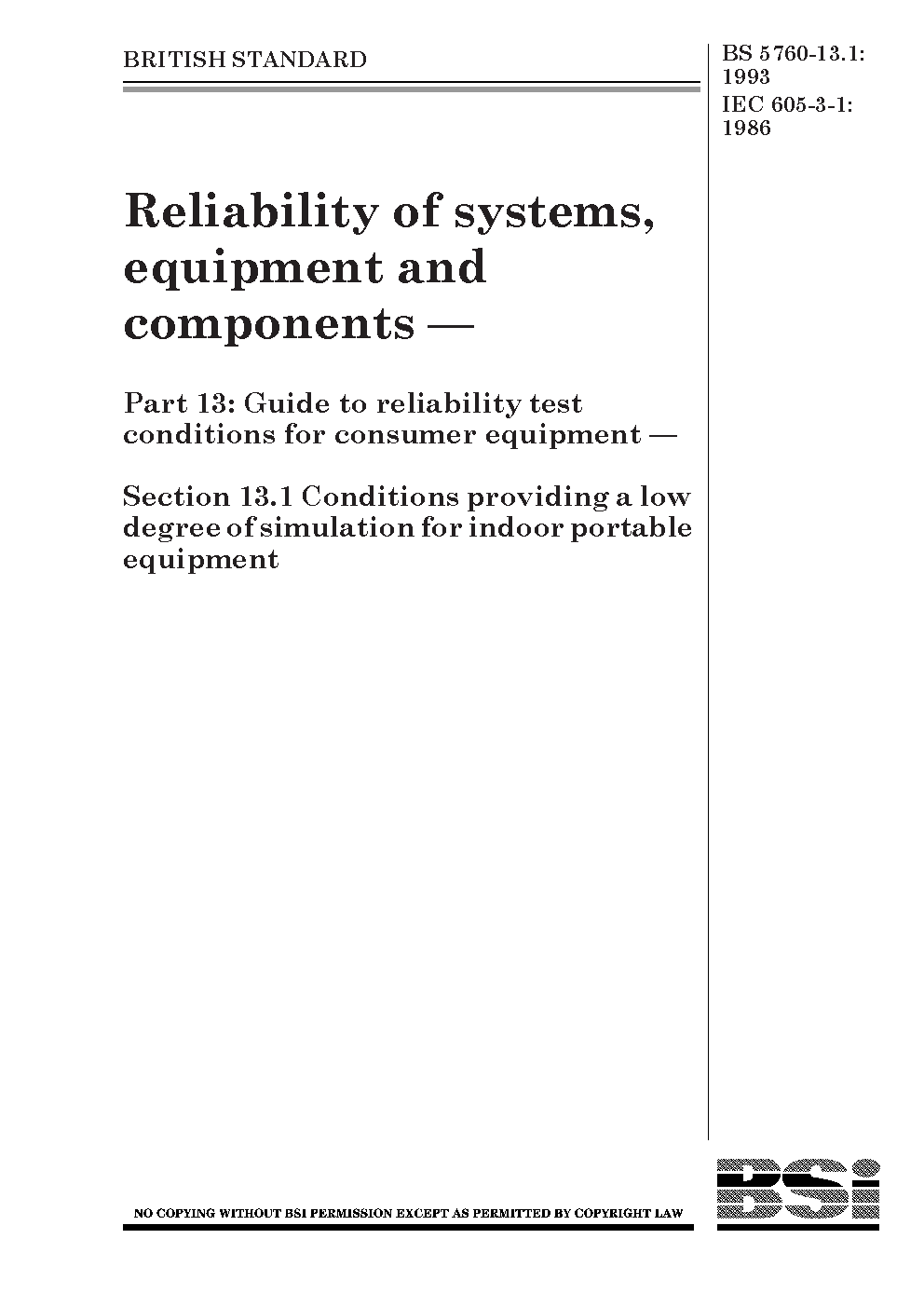 Reliability of systems, equipment and components. Guide to reliability test conditions for consumer Conditions providing a low degree simulation indoor portable