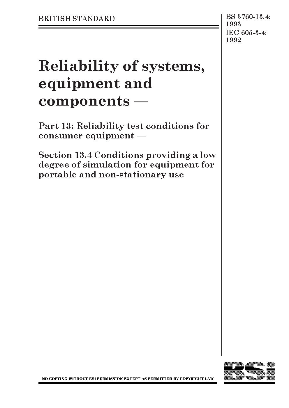 Reliability of systems, equipment and components. Guide to reliability test conditions for consumer Conditions providing a low degree simulation portable non-stationary use