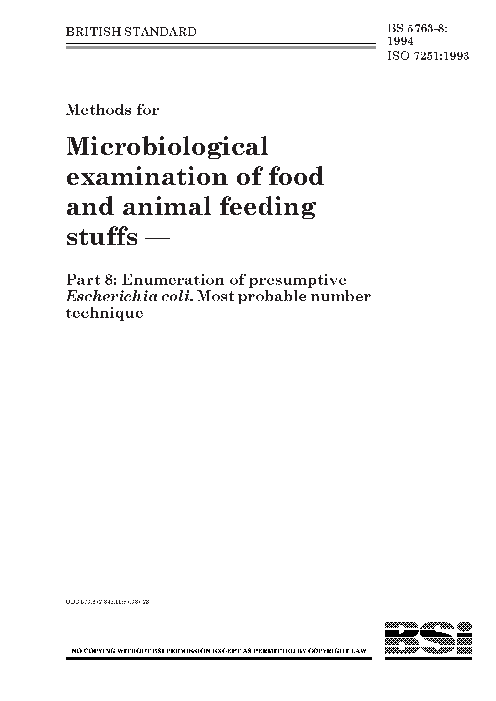 Methods for microbiological examination of foods and animal feeding stuffs. Enumeration presumptive Escherichia coli. Most probable number technique