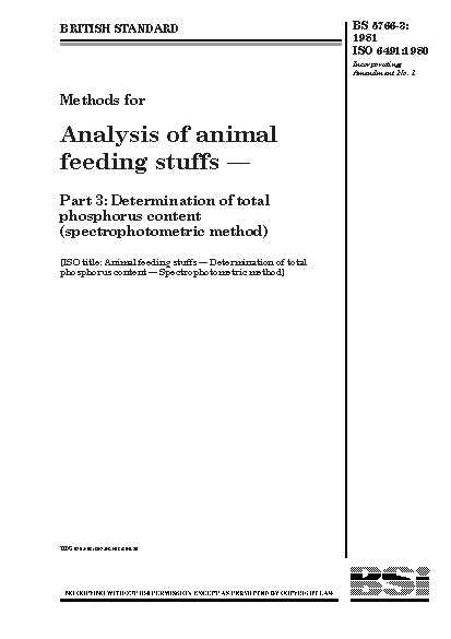 Methods for analysis of animal feeding stuffs Determination phosphorus content (spectrometic method)