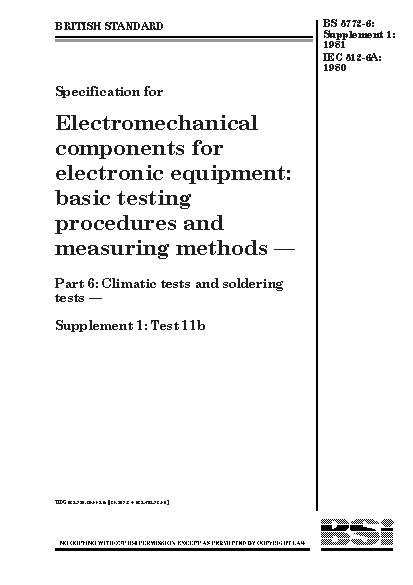 Specification for electromechanical components electronic equipment: basic testing procedures and measuring methods. Climatic tests soldering tests. Test 11b