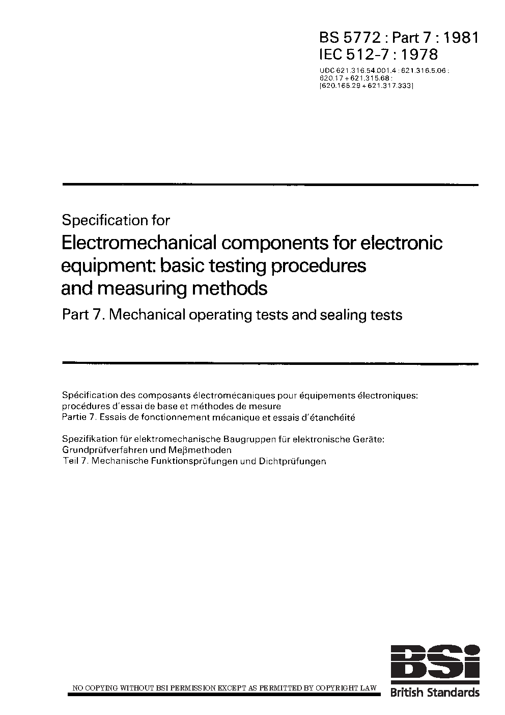 Specification for electromechanical components electronic equipment: basic testing procedures and measuring methods Mechanical operating tests sealing