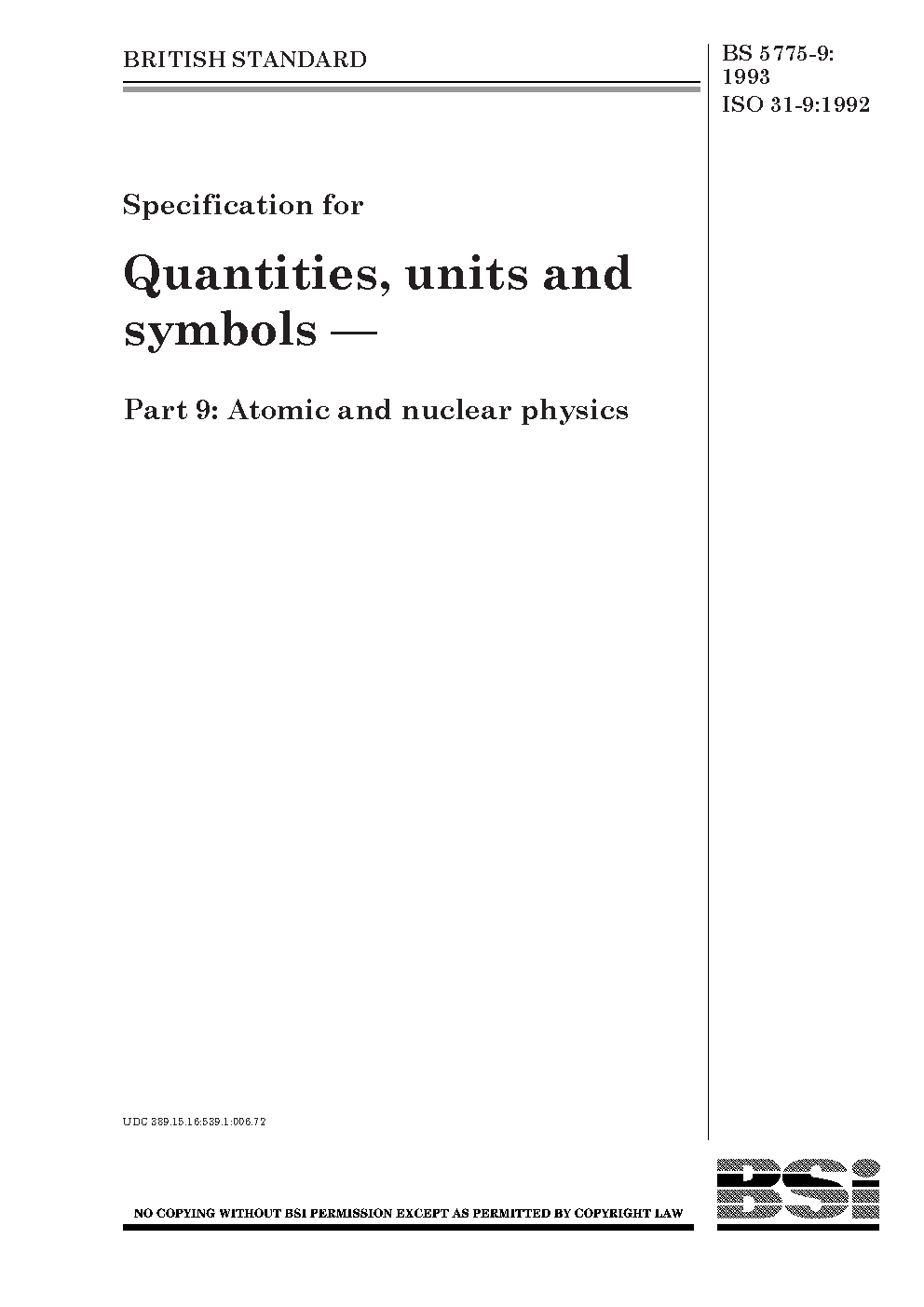 Specification for quantities, units and symbols Atomic nuclear physics