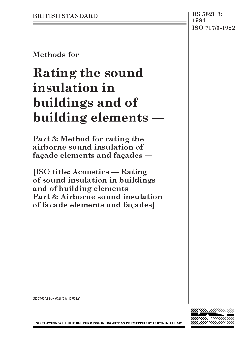 Facades;Doors;Sound insulation;Windows;Airborne sound insulation;Sound intensity;Roofs;Construction systems parts;Buildings;Graphical methods;Ratings