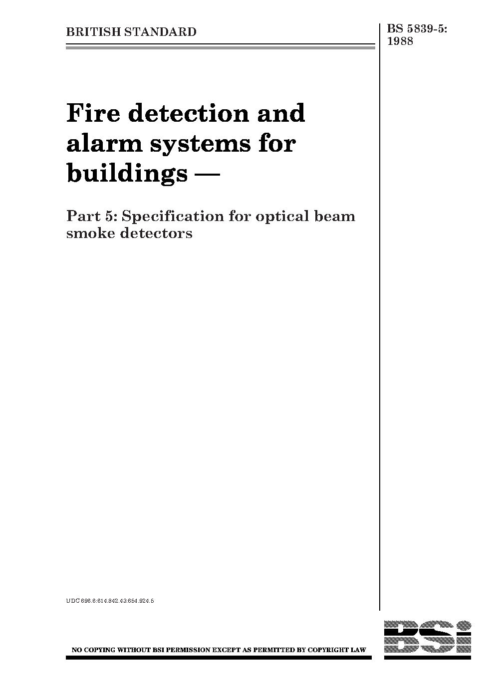 Fire detection and alarm systems for buildings Specification optical beam smoke detectors