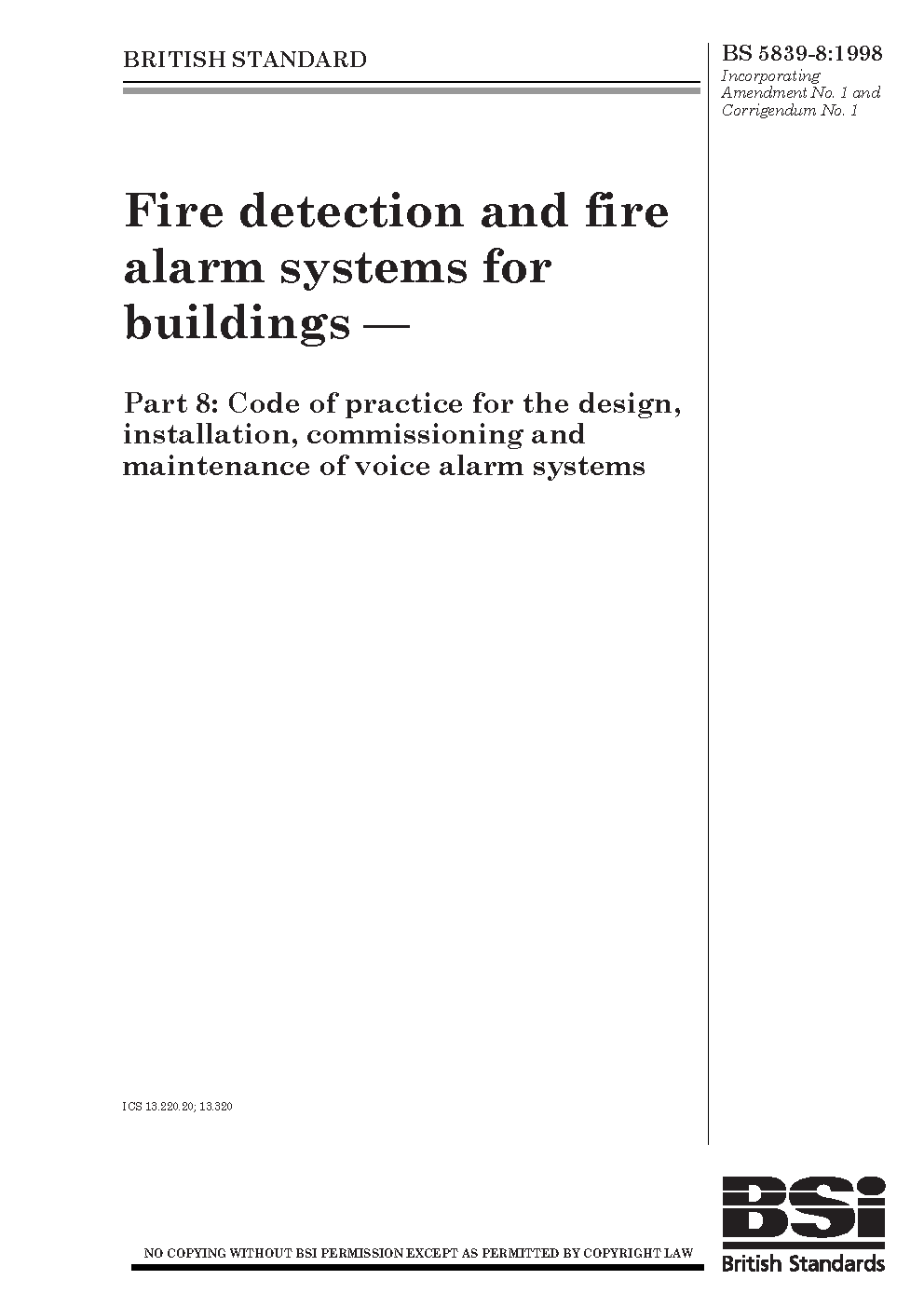 Fire detection and fire alarm systems for buildings Code of practice the design, installation, commissioning maintenance voice