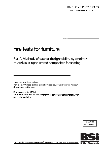Fire tests for furniture Methods of test the ignitability by smokers' materials upholstered composites seating