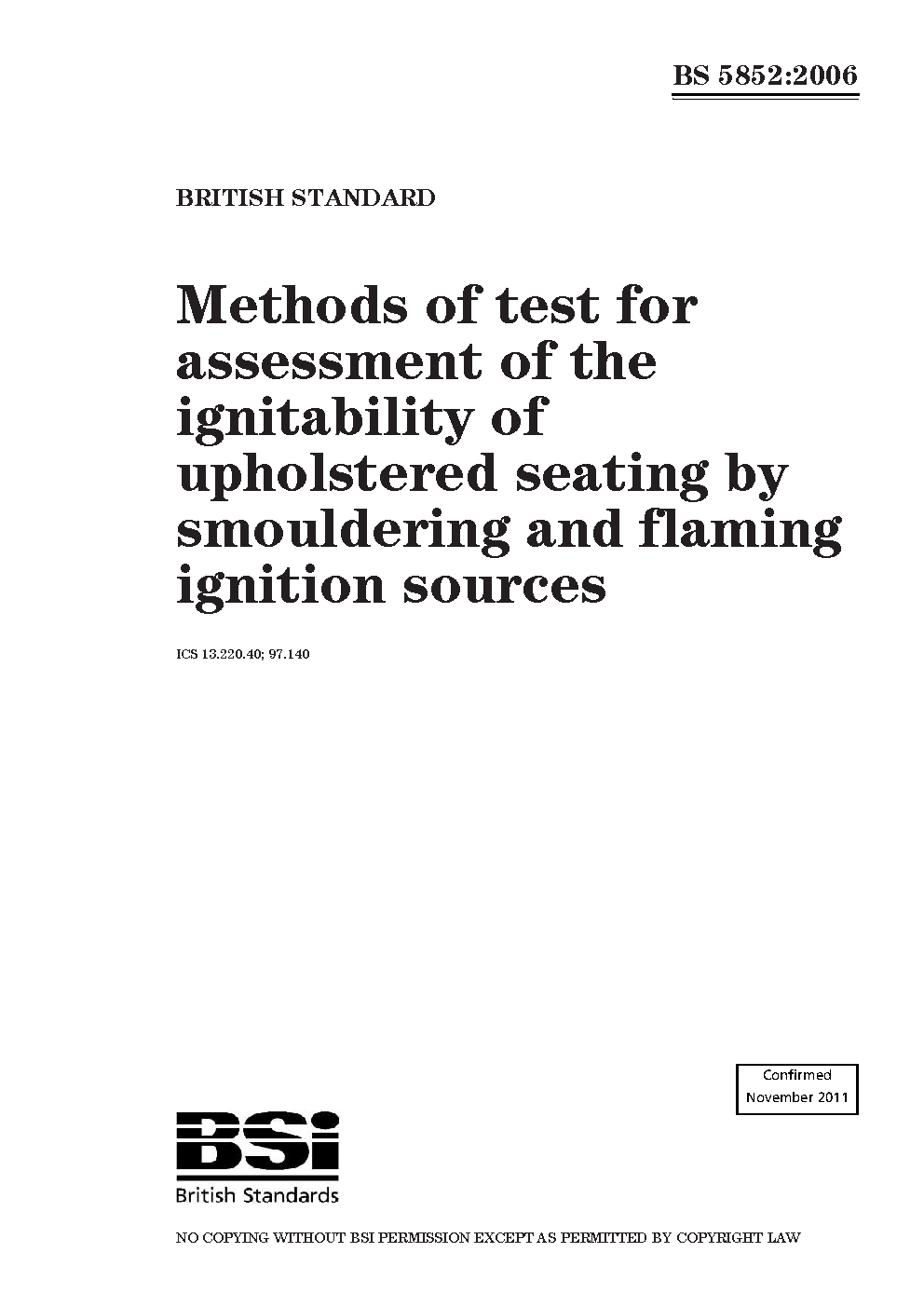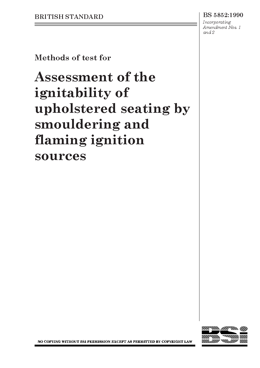 Methods of test for assessment of the ignitability of upholstered seating by smouldering and flaming ignition sources