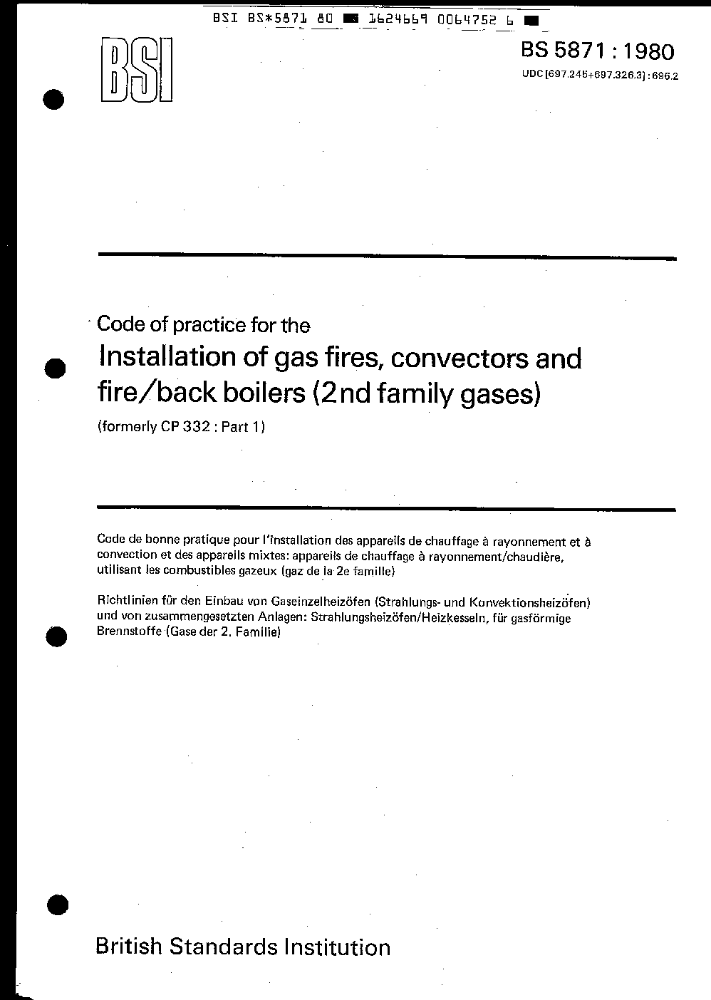 Code of practice for the installation of gas fires, convectors and fire/back boilers (2nd family gases)