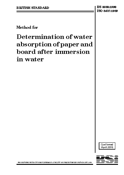 Paper products;Specimen preparation;Board (paper);Paper;Water-absorption tests;Testing conditions