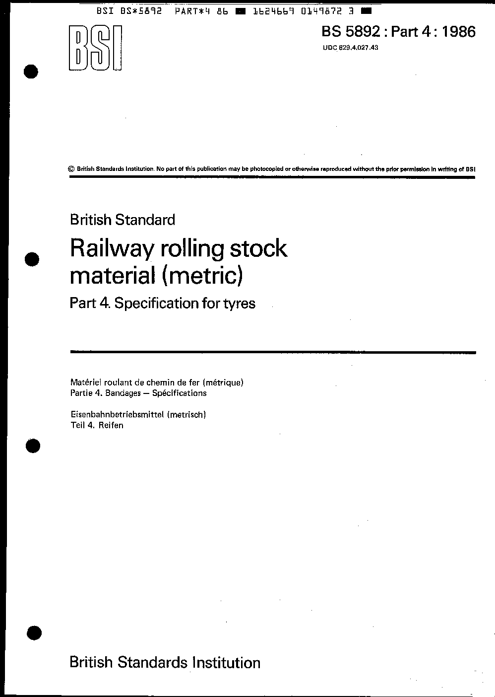 Tensile strength;Grades (quality);Heat treatment;Elongation;Sample location;Vehicle components;Railway vehicle components;Impact strength;Steels;Railway vehicles;Hardness;Hot-working;Grain size;Dimensional tolerances;Solid tyres;Chemical composition;Sampling methods;Rolling;Inspection;Tyres;Marking;Railway equipment