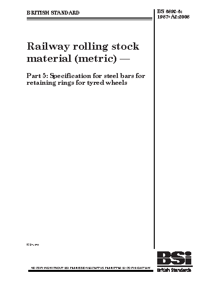 Railway rolling stock material (metric) Specification for steel bars retaining rings tyred wheels