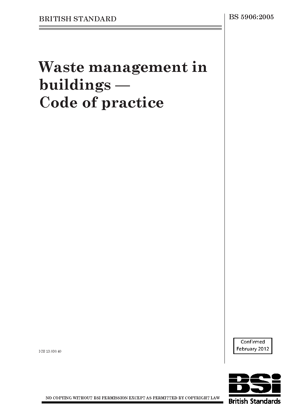Code of practice for storage and on-site treatment of solid waste from buildings
