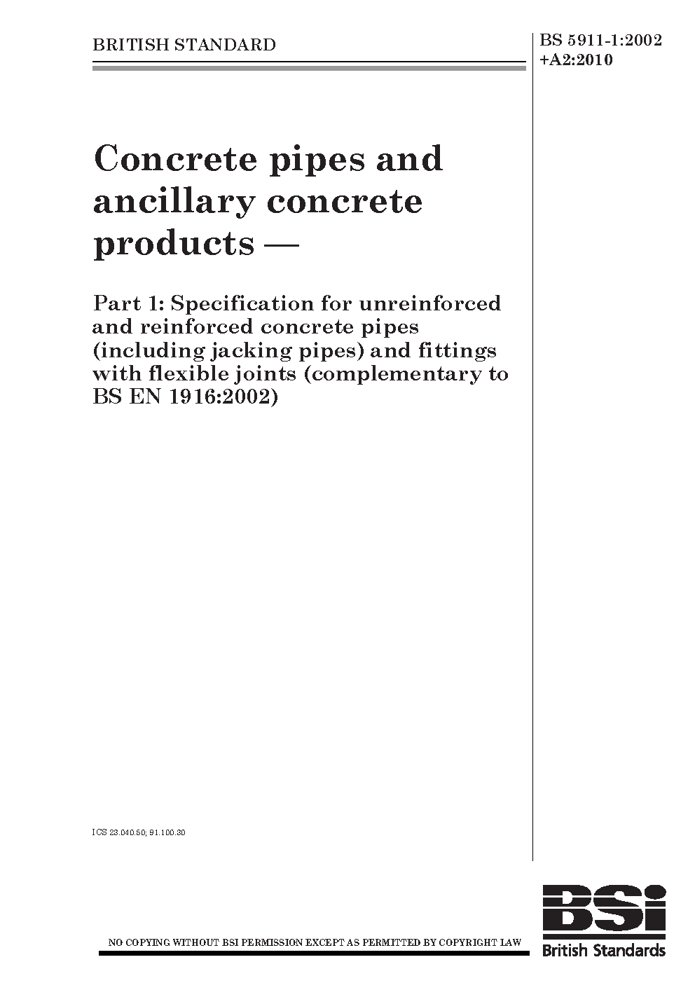 Precast concrete pipes, fittings and ancillary products Specification for pipes with flexible joints manholes
