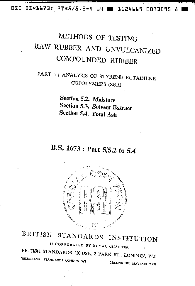Methods for chemical analysis of rubber Determination volatile matter content raw rubbers