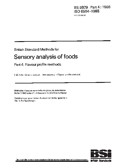 Methods for sensory analysis of food Flavour profile methods