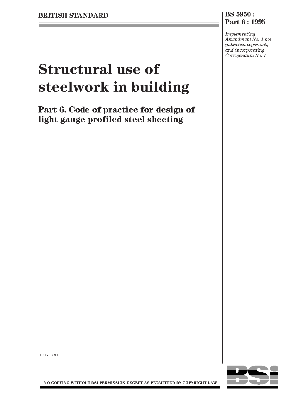 Structural use of steelwork in building Code practice for design light gauge profiled steel sheeting