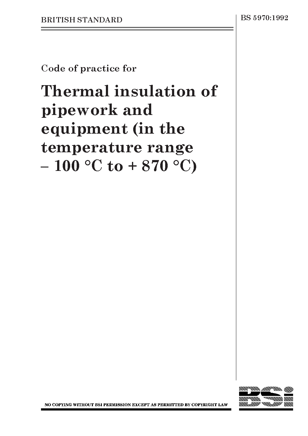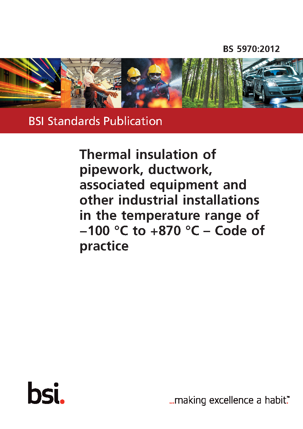 Thermal insulation of pipework, ductwork, associated equipment and other industrial installations in the temperature range of -100°C to +870°C. Code of practice